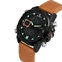 Famous Brand Mens Leather Digital Dual Time Relogio Masculino Brown